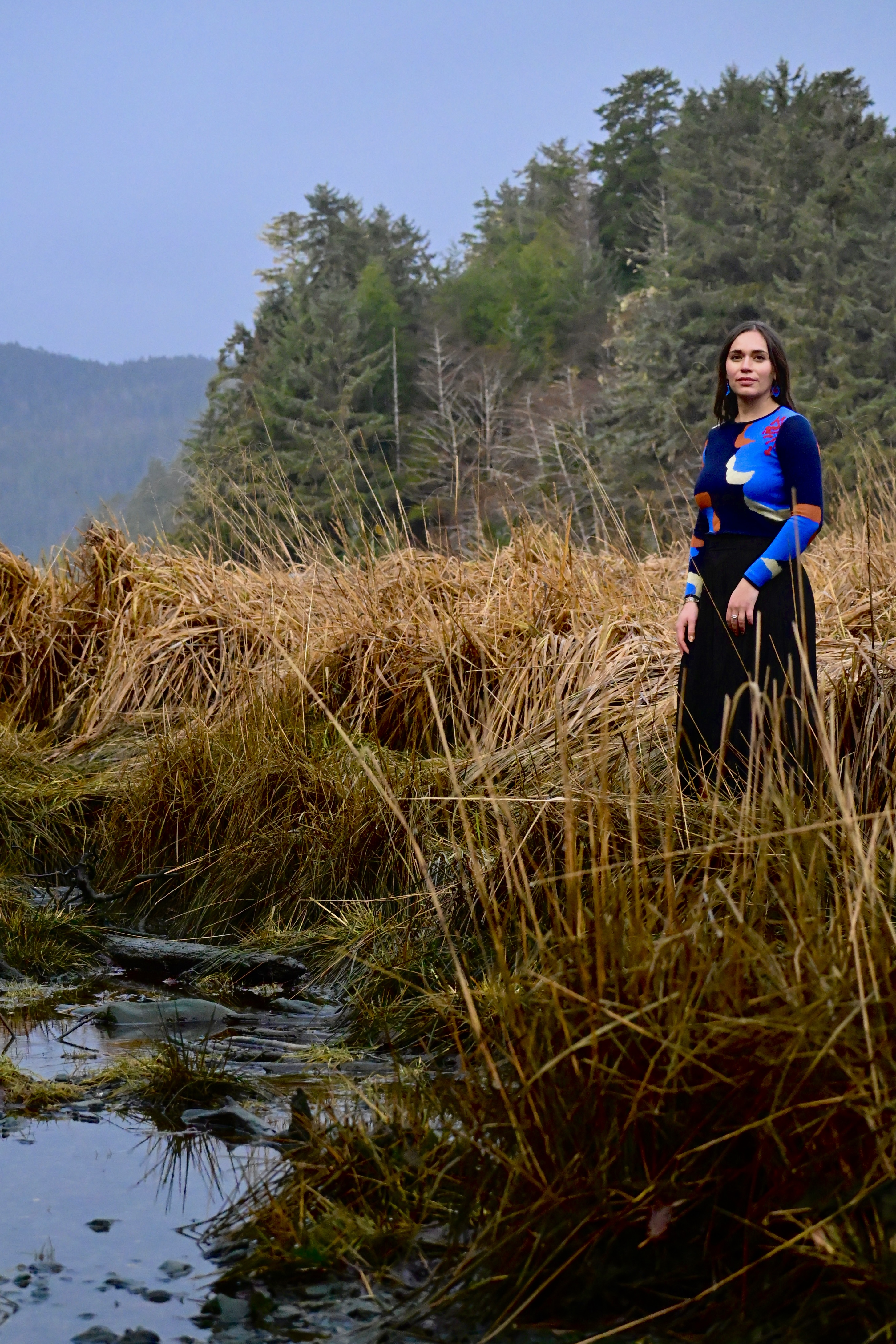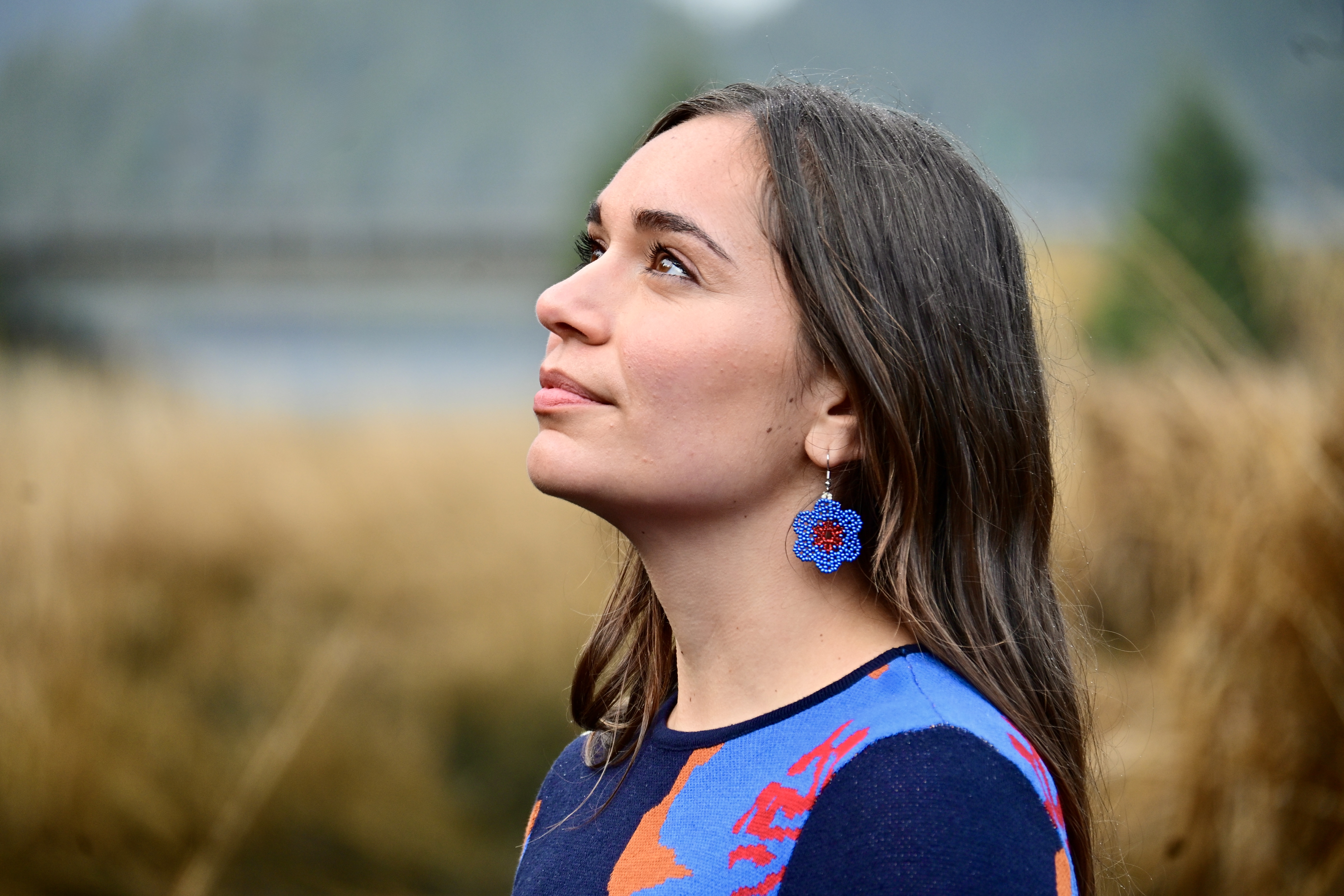 Lilli first learned how to bead when moving to Sitka and local culture bearers shared knowledge on Lingit beading. She got to learn techniques alongside the local youth she was working with! When she learned the basics, she chose to explore how beading looked in her own culture. She has enjoyed the meditative practice of the circular beading and incorporating her own bold color choices into traditional styles.